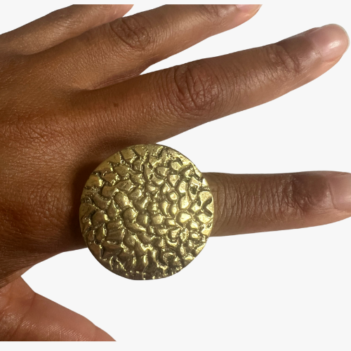 CARE INSTRUCTIONS: To care for your brass ring, gently clean it with a soft cloth and mild soap, then dry thoroughly to maintain its shine and prevent tarnish.