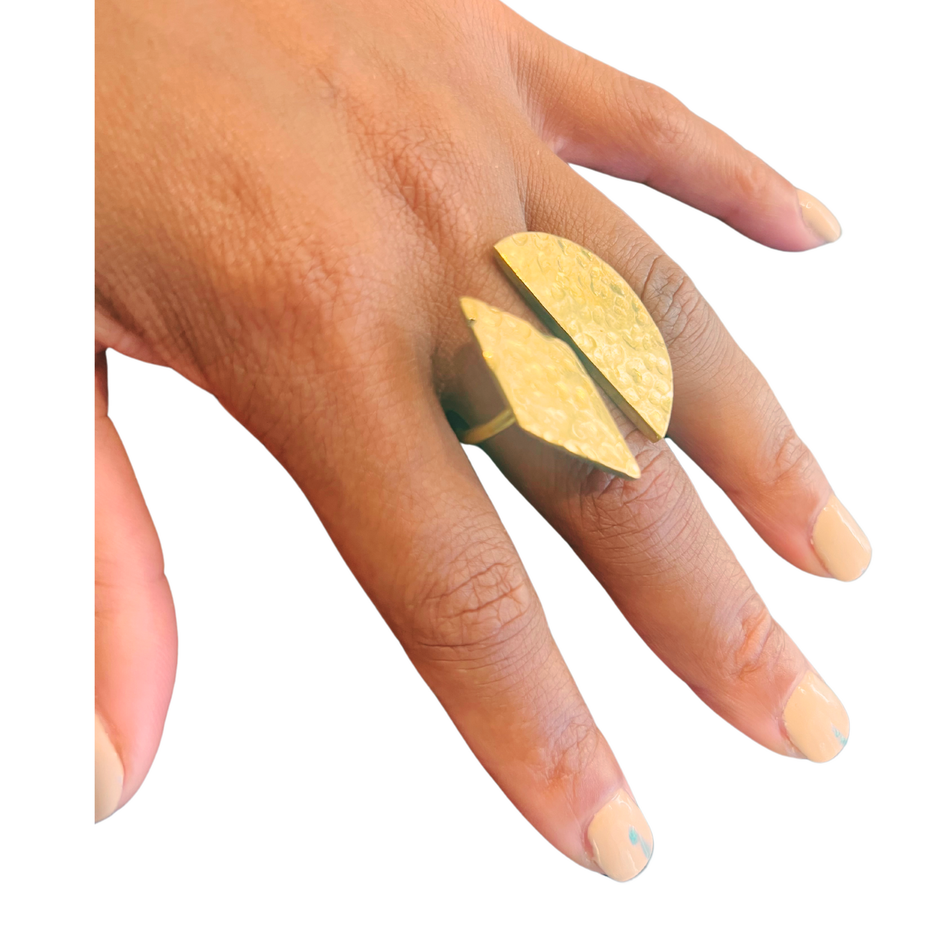 CARE INSTRUCTIONS: To care for your brass ring, gently clean it with a soft cloth and mild soap, then dry thoroughly to maintain its shine and prevent tarnish.