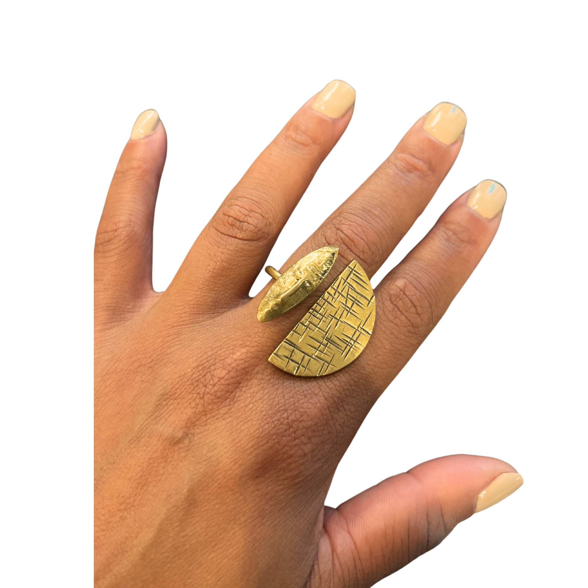 CARE INSTRUCTIONS: To care for your brass ring, gently clean it with a soft cloth and mild soap, then dry thoroughly to maintain its shine and prevent tarnish.