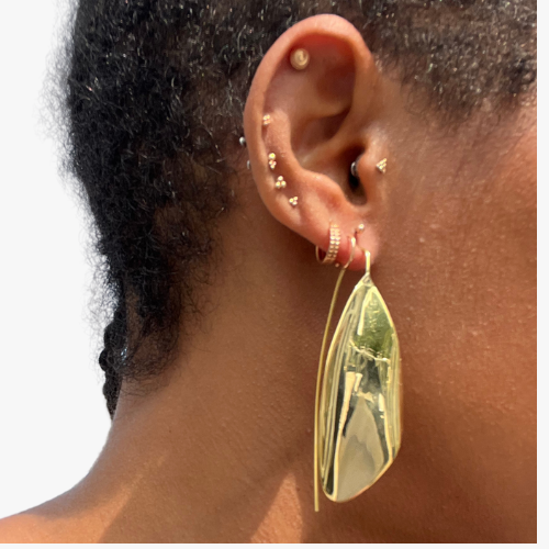 The name "Tone" means "dewdrop" or "raindrop" in Swahili, evoking a feeling of natural purity and serene beauty. Wear the Tone Earring as a subtle statement of refined style, a reminder of the simple yet profound beauty found in nature's delicate forms. Let its smooth contours and gentle shimmer add a touch of quiet grace to your look.