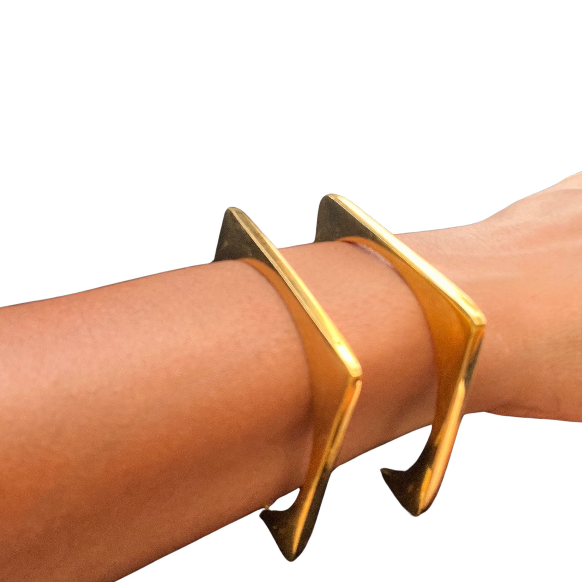 The Utajiri Bracelet, a bold and modern statement piece, is a handcrafted brass cuff that exudes confidence and style. Its sleek, angular design, inspired by the sun's rays, captures the essence of light and energy. Each bracelet is a unique piece of wearable art, reflecting the rich cultural heritage of Kenya.